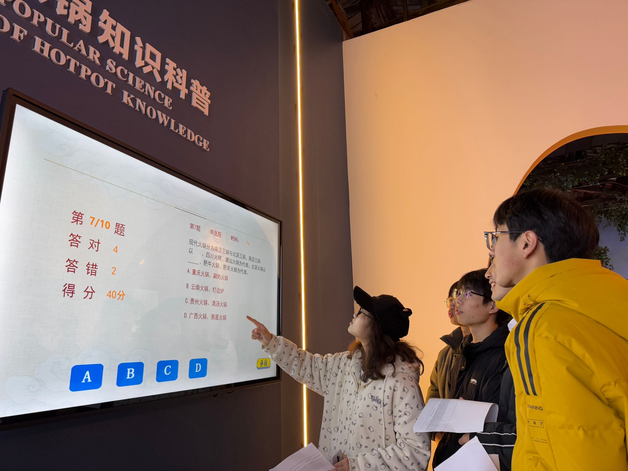 提到重庆,同学们自然而然地会联想到那令人垂涎欲滴、香气四溢的火锅,这无疑是重庆的一张独特名片。重庆合川火锅博物馆的前身,曾是古代的盐仓,它见证了古代盐业的兴衰与变迁。如今,它继续孕育着新的生机,承担着文化遗产传承者的角色,发展成为一个以火锅文化为主题的特色博物馆。该博物馆致通过展示中国各地火锅的多样性,追溯并传播了中国火锅文化与产业的发展历程。其中,关于重庆火锅起源的介绍,使部分同学惊讶地了解到重庆火锅起源于清末民初的“水八块”。在博物馆内,同学们不仅能够观赏到琳琅满目的火锅文物和详尽的历史资料,还能通过多媒体互动和场景还原技术,亲身体验到火锅文化的独特魅力。