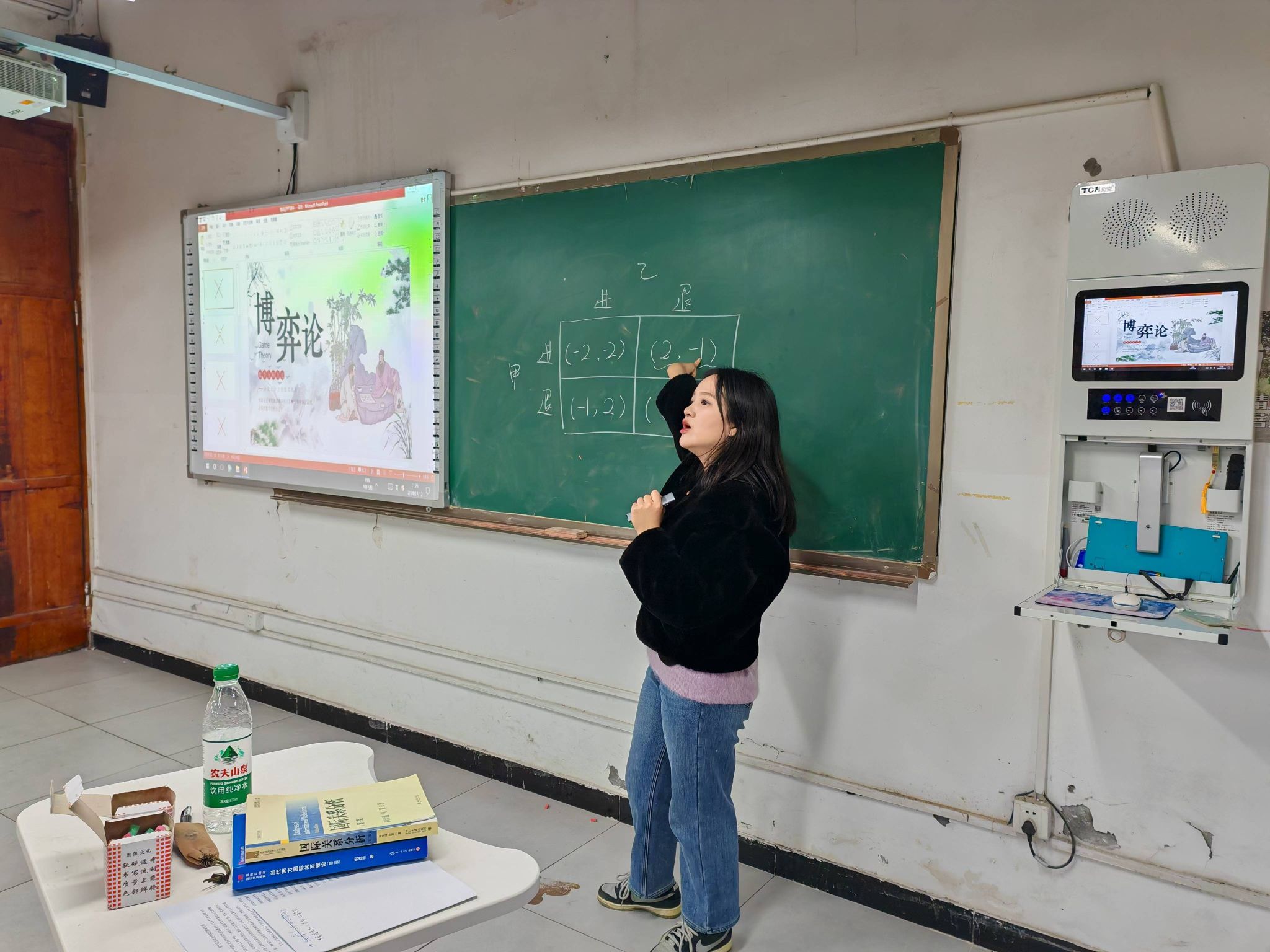 为使学生能从跨学科视角对复杂的国际政治问题进行思考,透视隐藏在现象背后的行为动机,2024年12月12日,远景学院主讲国际关系的杨阳老师携手数学专业的李欢老师,在《国际关系理论与实践》课程中,采用双师授课模式,就“博弈论与国家间决策分析”这一专题展开授课。