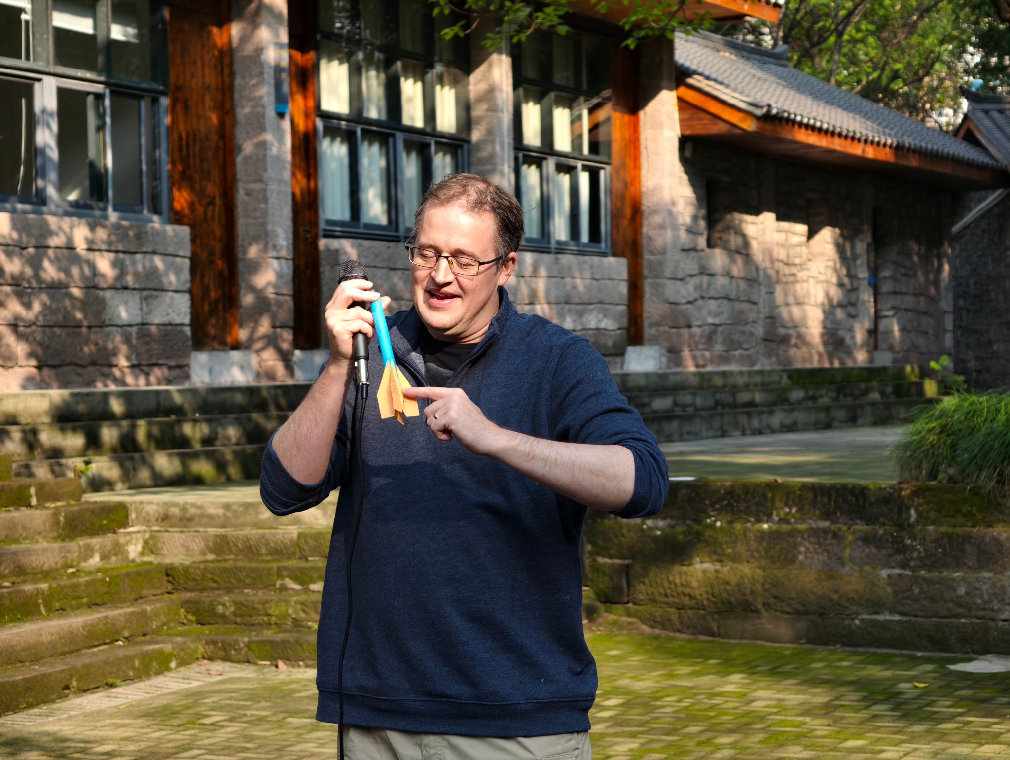 很荣幸的能够参加Francis Stonier教授的活动,听教授讲解火箭相关的知识,以及教我们如何制作自己的纸火箭,在活动过程中我们一步一步的制作自己的火箭,感受到了动手的快乐和创造力的释放,在看到自己的火箭发射成功的那一刻,心中充满了无限的自豪,这不仅是一次简单的手工活动,更是一次对科学探索和体验。总之,这次教授纸火箭制作发射的活动给我留下了深刻的印象和美好的回忆,也让我更加热爱科学和探索未知的世界。