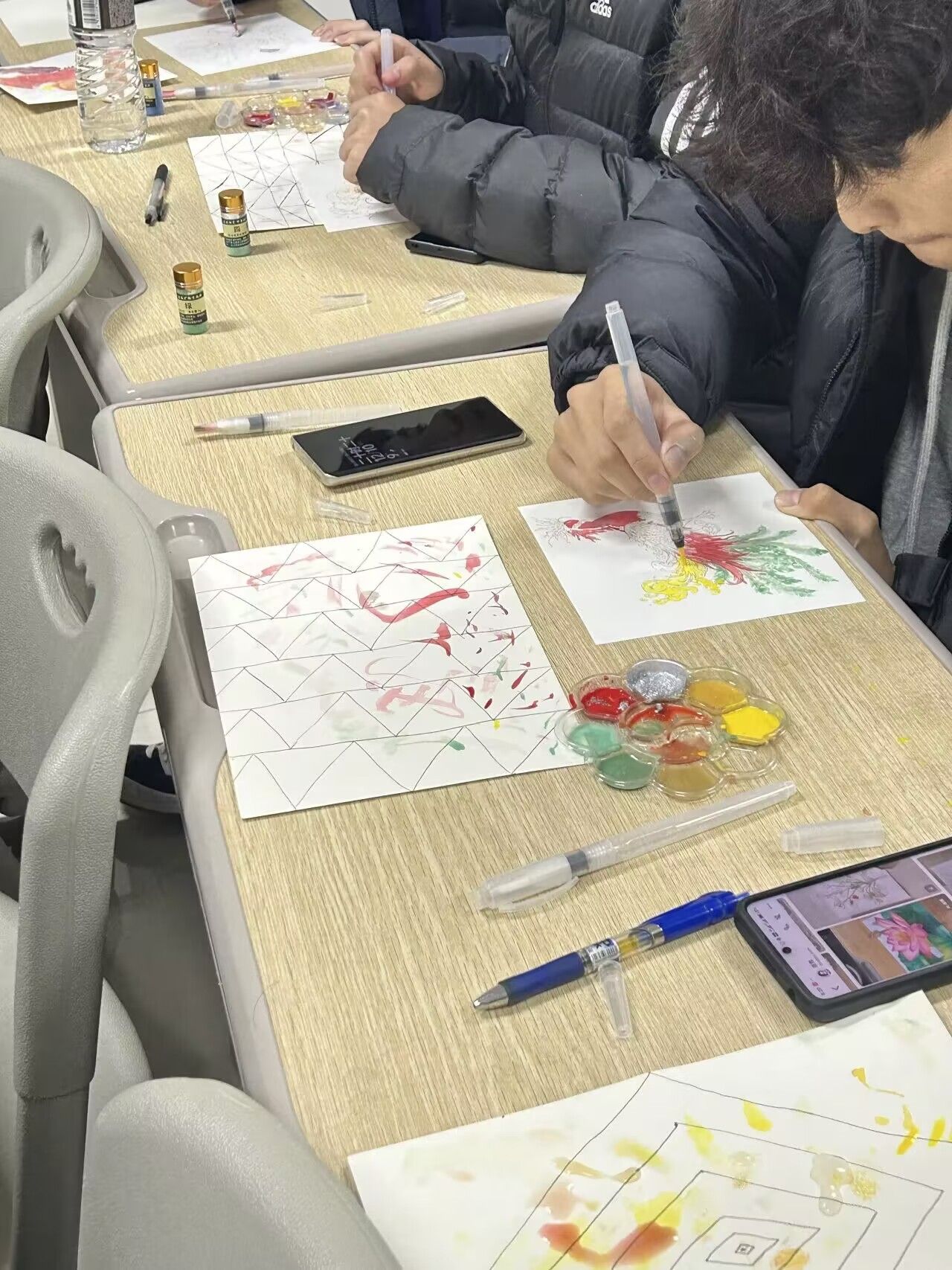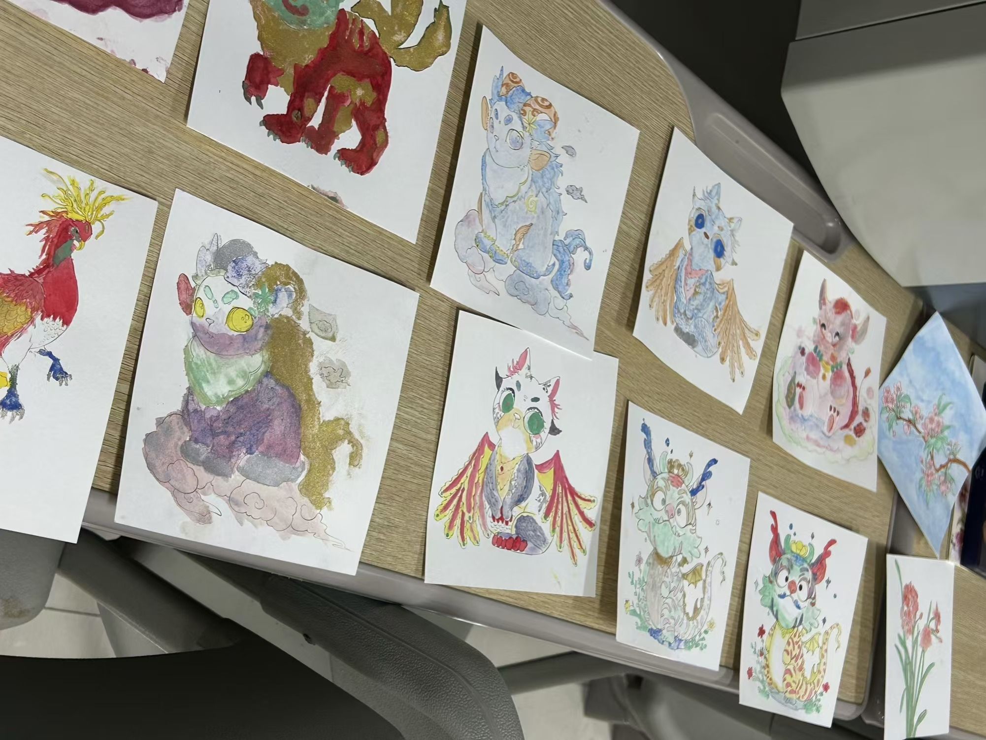 在创作过程中,同学们不仅深刻体会到了矿物原料的化学特性对色彩的影响,还学会了根据创作意图选择合适的颗粒度。尽管矿物原料的附着性与传统颜料有所不同,但正是这些挑战让大家更加深入地了解了矿物原料的特性,并掌握了特殊的