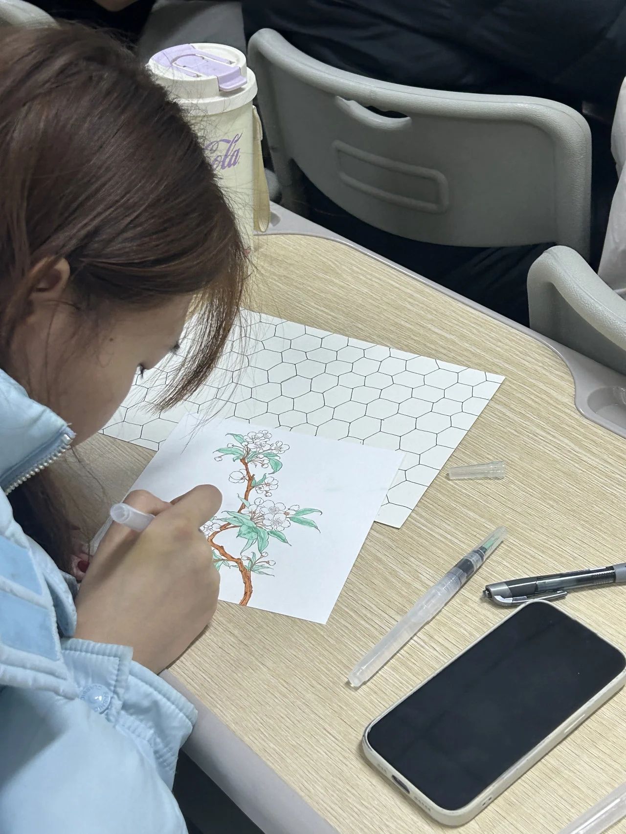 课程的高潮部分是用矿物原料作画。面对一堆形态各异、色彩丰富的矿物原料,同学们满怀期待地开始了创作之旅。从研磨矿物原料到调色、作画,每一步都充满了挑战与惊喜。矿物原料的色彩浓郁、厚重,且具有天然的质感,与传统颜料截然不同。同学们在实践中不断摸索,将矿物原料的独特特性融入艺术创作中,创造出了一幅幅独一无二的画作。