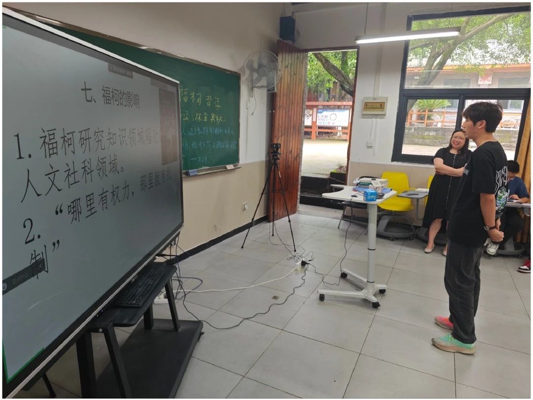 这次的课堂是我从未体验过的双师授课,通过线上视频会议和线下老师讲述,我深入了解了福柯的哲学思想。福柯的理论让我意识到权力在社会中的无处不在和复杂性,以及知识和真理的相对性和建构性。这些观点让我对现实世界产生了新的认识,并激发了我对哲学问题的思考和探索。我深感福柯的哲学思想具有独特的魅力和深刻的洞见,能够引导我们更深入地理解社会现象和人类行为。这种课堂授课方式让我能够更快地融入课堂氛围,积极参与讨论,同时使课堂氛围也更加生动和直观,有助于我更好地理解和掌握知识,享受更多元化的学习体验。