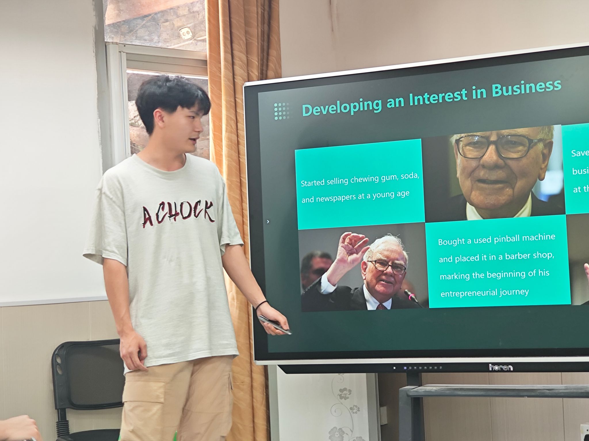 第三小组分享了“股神”巴菲特的传奇经历。巴菲特之所以能在全球投资领域取得如此卓越的地位,源于他与众不同的投资哲学——“Slow is fast”(慢就是快)。这一核心理念不仅指导了他从一名默默无闻的投资者蜕变为享誉全球的投资大师,还影响了无数投资者的决策方式。巴菲特对投资的独到见解、深刻理解和持续的热情,使他能够洞察市场动向,抓住投资机会。他的成功故事不仅是个人的辉煌成就,更是美国资本市场成熟稳健发展的一个生动例证。
