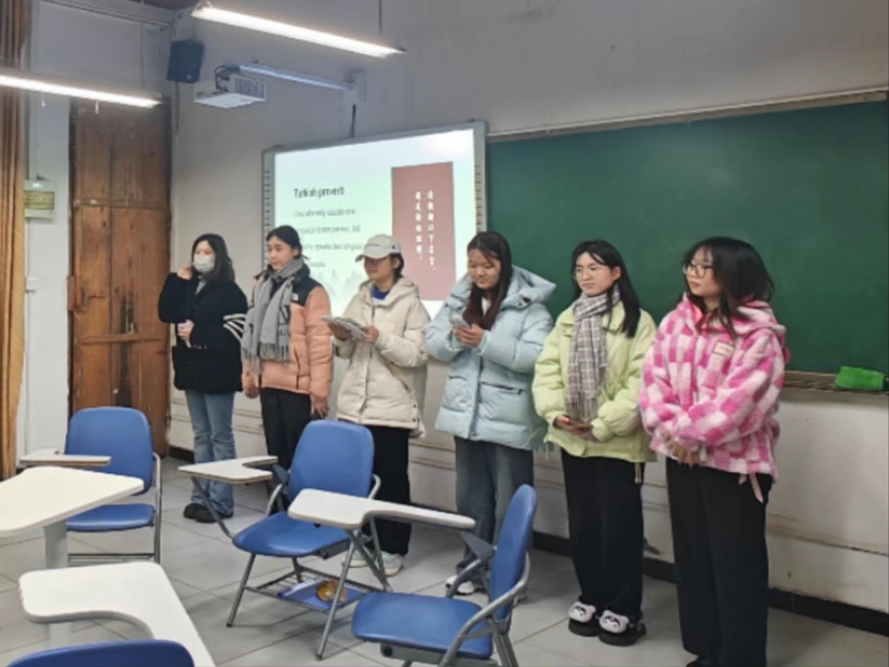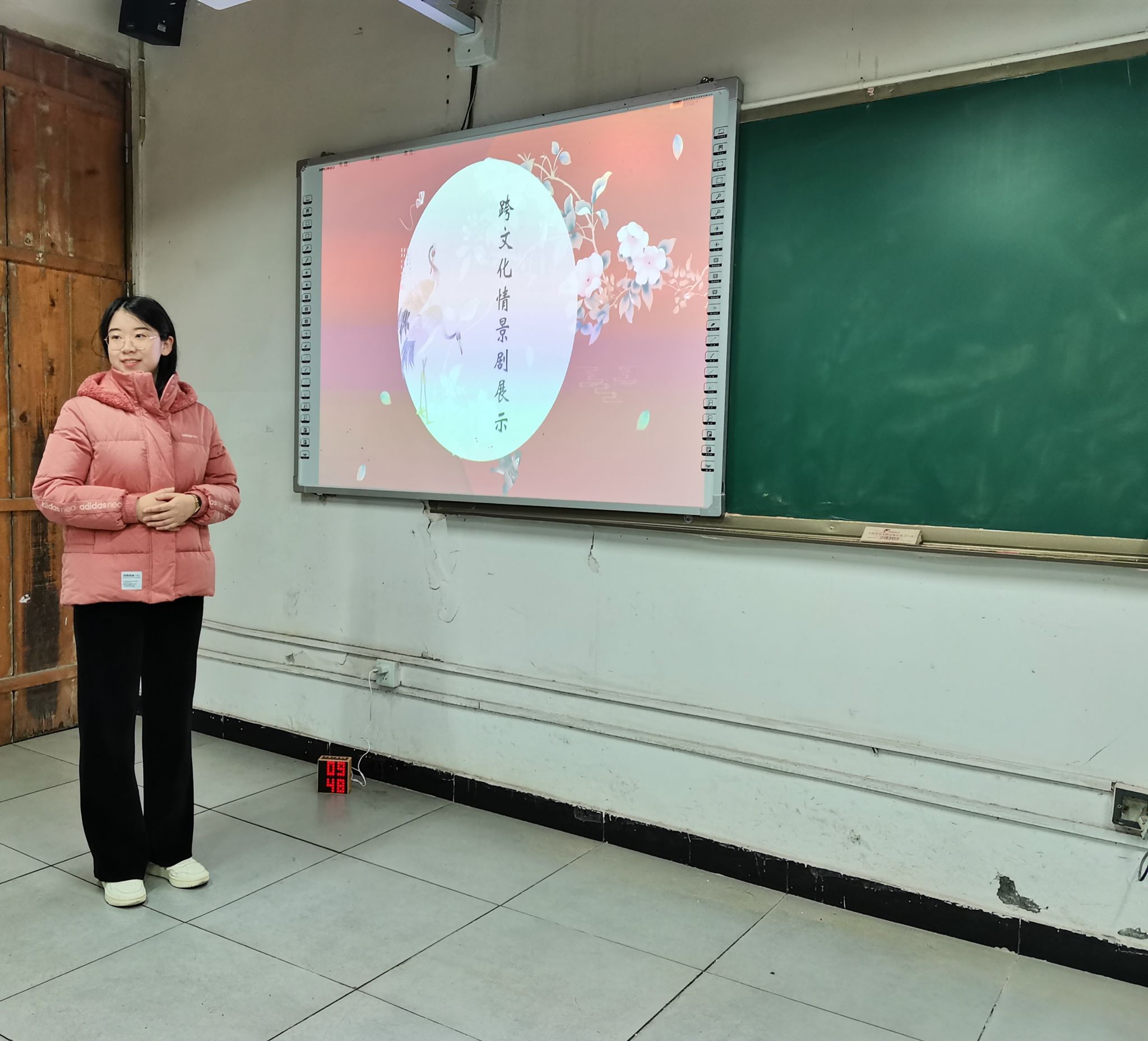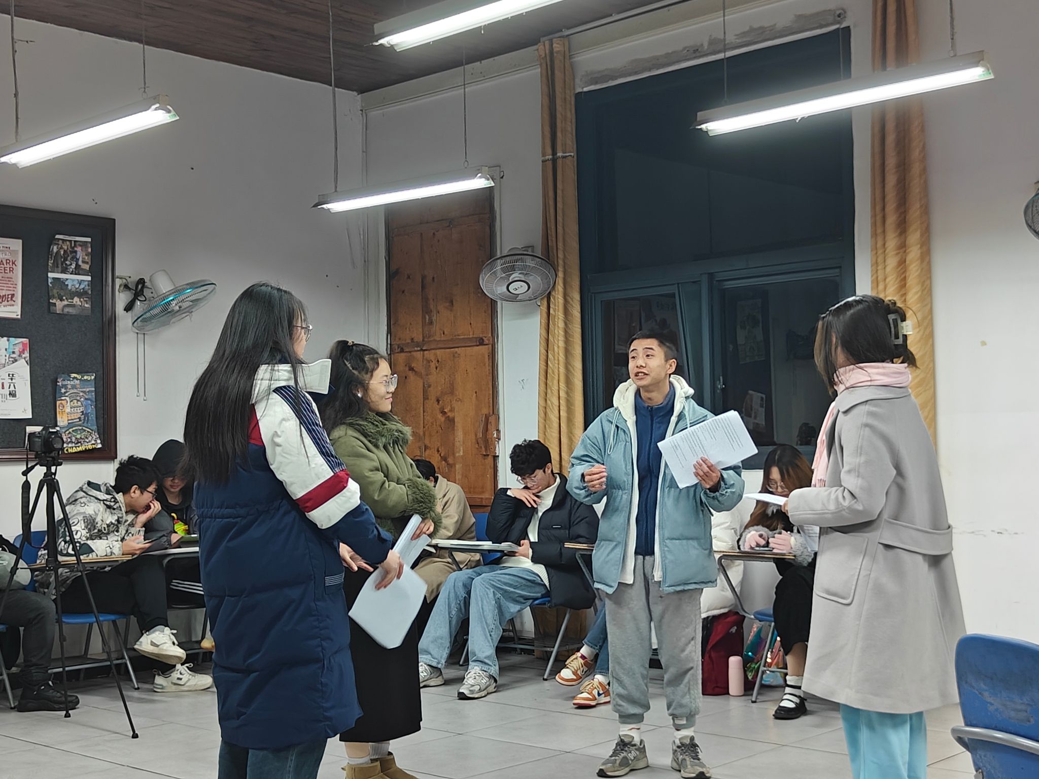 为启发大学生运用跨文化知识,挖掘现实生活中的文化交流实例,培养大学生的跨文化理解能力,促进中西文化互鉴,2023年12月19日晚7点,《博雅英语1》授课教师陈玥和同学们齐聚远景学院菩提多功能教室1,开展期末跨文化实践活动。十分钟的舞台表演,既有引人入胜的手势语对话,又有立足不同国家背景,引人深思的台词。不但考验同学们的英语口语表达能力,还磨炼他们的跨文化沟通能力和舞台表现力。