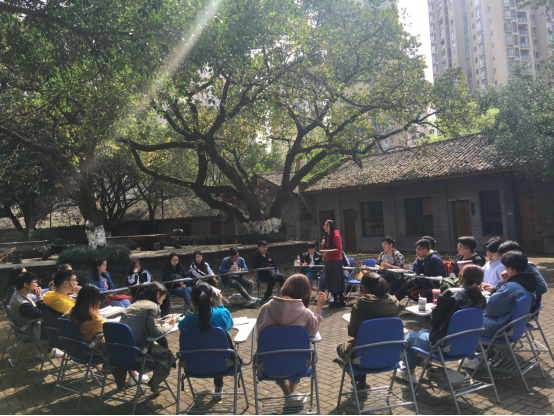 《现代西方哲学》课程中,吴慈荷老师以叔本华、尼采等11位哲学家的思想和著作介绍引入,推荐阅读清单,结合本学期的课程项目设计,引导学生进行原著阅读。师生围坐在菩提树下,共同探讨经典,你能分得清谁是老师,谁是学生吗?